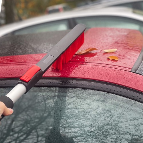 - Miękka szczotka: Delikatne włosie skutecznie usuwa śnieg, nie pozostawiając śladów ani rys na lakierze.