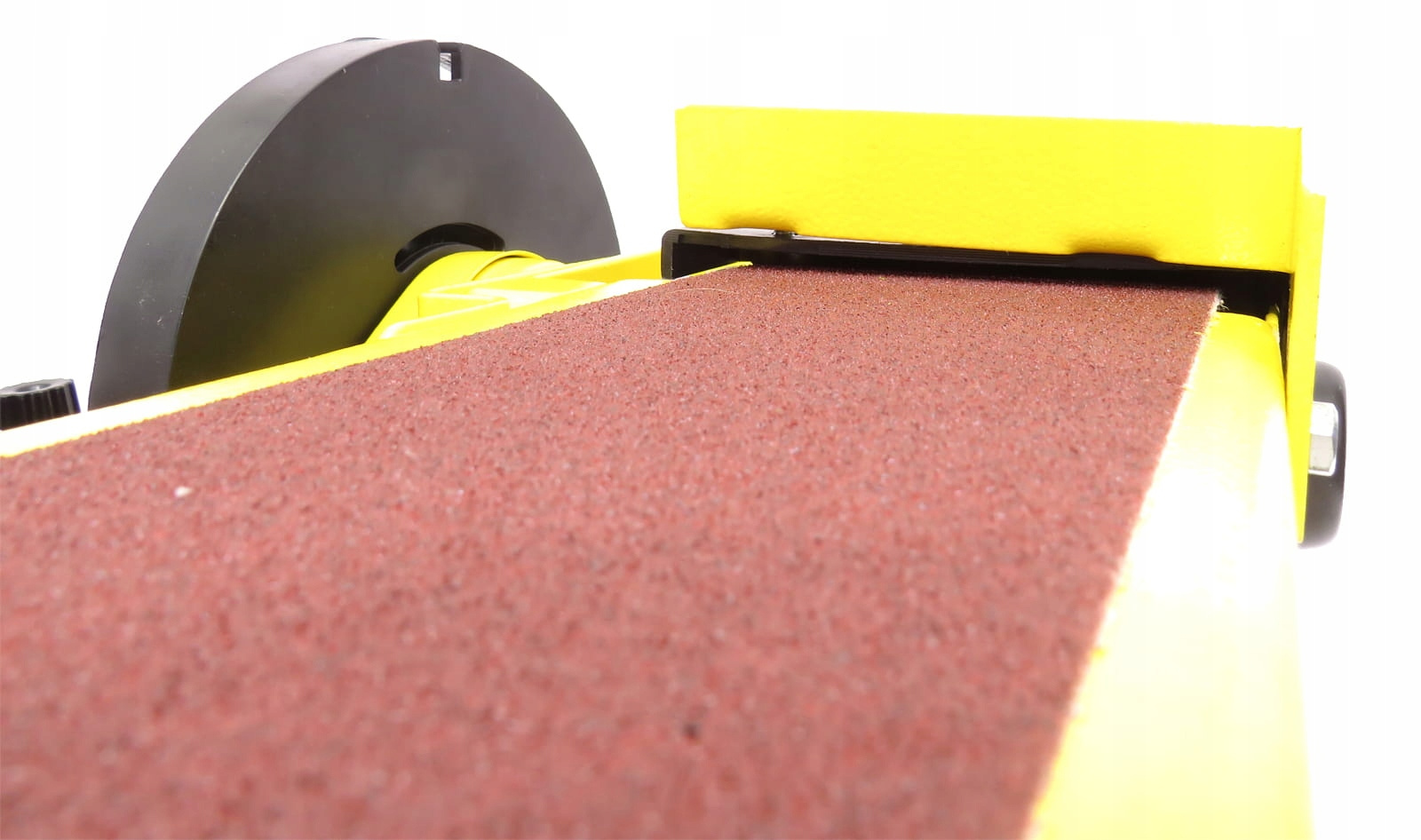 - Montaż i przygotowanie – Umieść szlifierkę na stabilnym, równym podłożu. Sprawdź mocowanie taśmy i tarczy. Podłącz urządzenie do gniazdka 230V.