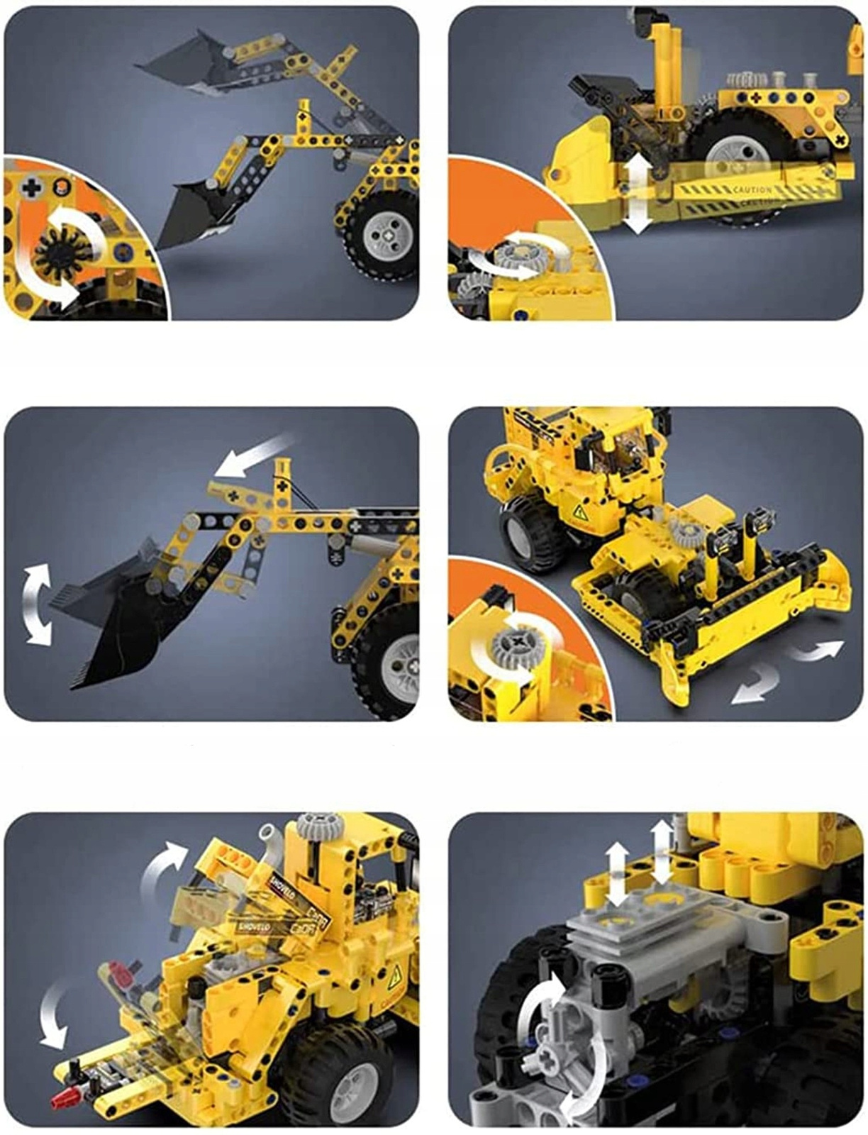 1️⃣ Wszechstronność: Możliwość zbudowania dwóch różnych pojazdów budowlanych z jednego zestawu.